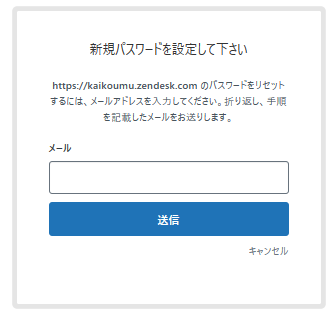 - パスワード設定用のウィンドウが開くので、メールアドレスを入力し'送信'をクリックします