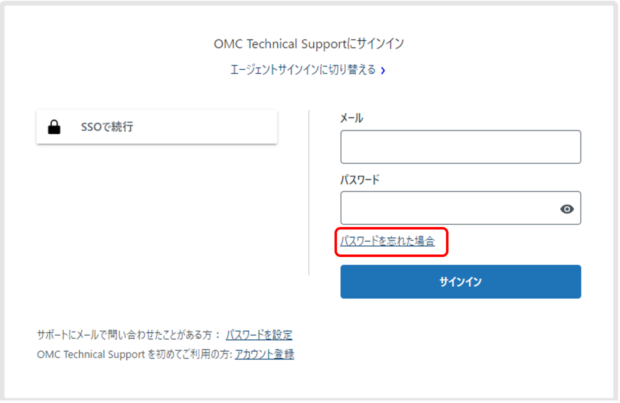 パスワードを忘れた方は、サインインのためパスワードを新たに設定する必要があります。以下の手順にて設定ください。