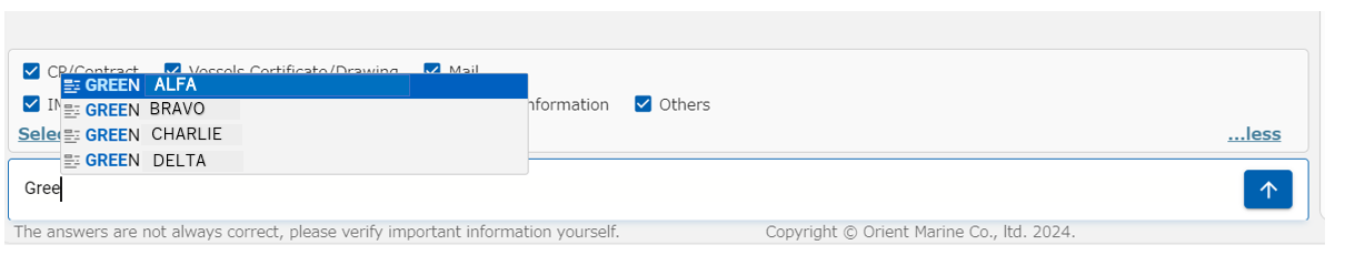 それを補助するために、Chatで船名を途中まで入力すると、自動で候補の船名が表示されることをご存じですか?