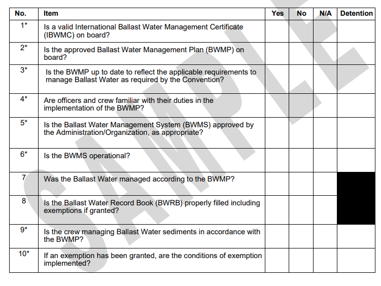 PSC検査官は、CIC実施中にCIC用の質問票(Questionnaire)を使用します。 質問票には全10項目の質問が記載されており、PSC検査官が船舶が重要な検査項目を満たしていないと判断された場合にその船舶を拘束することができます。